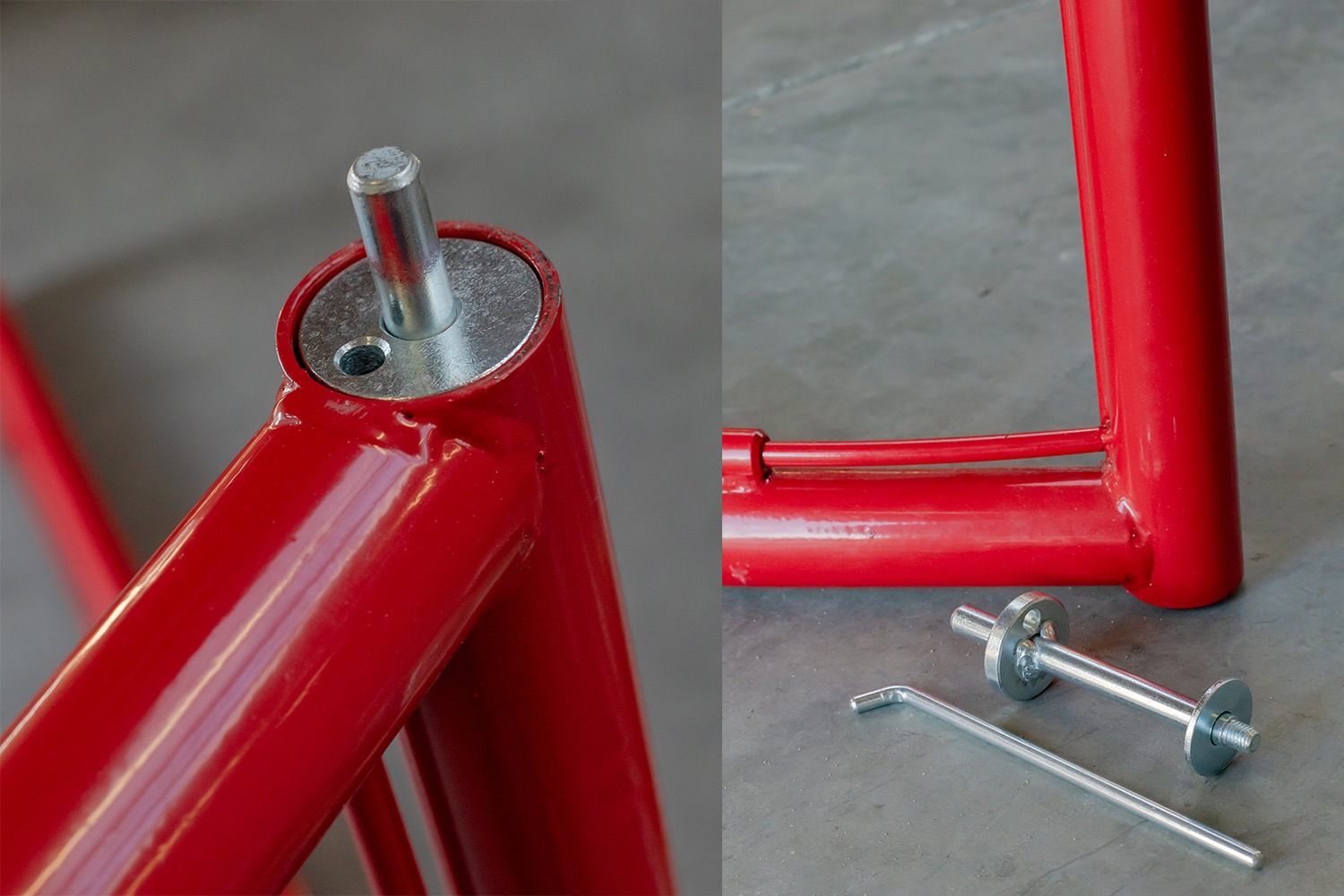 - Pulverbeschichteter Stahlrahmen in rot.