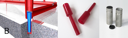 - Befestigung mit Stahlpin (Bild B) oder Flex Pegs (Bild A, wie in NHL verwendet, nicht geeignet für U15 Spieler).