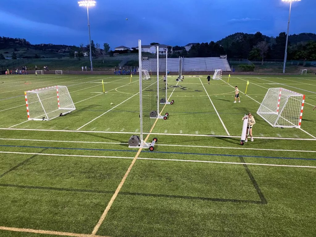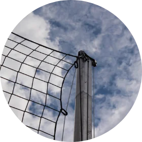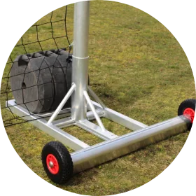 Die perfekte Ballfanganlage für temporäre Veranstaltungen bei denen keine Bodenhülsen zum Einsatz kommen können. Die Ballfanganlage lässt sich in der Länge beliebig erweitern.