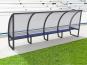 Aluminium-Spielerkabine. Der obere Bügel mit gebogenem Profil beugt Kopfverletzungen vor. Verstärkte Aluminium-Sitzschiene. (PVC-Sitz mit oder ohne Rückenlehne auf Anfrage). Lieferung inklusive Verankerungszubehör.