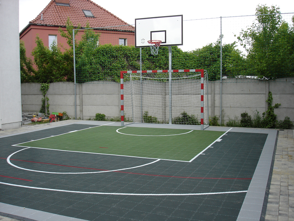 Die Komplettlösung für alle, die ein wartungsarmes, kostengünstiges Handball-Spielfeld benötigen. Der Bodenbelag besteht aus Polypropylen-Platten, die wie ein Fußboden zusammengesteckt werden.