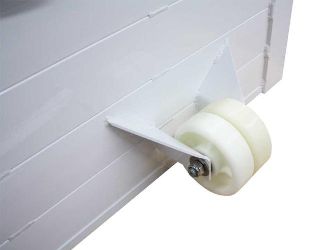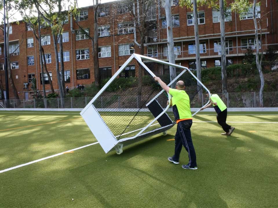 Versetzte Rückpfosten (oberer Abstand 1,5 m) zur Vermeidung von Ballaufprall und -abprallern. Die Rückwände sind mit dickem EPDM-Gummi ausgekleidet, um Stöße effektiv zu absorbieren. Die integrierten Doppelhinterräder ermöglichen eine hervorragende Mobilität dieses Tores auf allen Oberflächen. Die hakenlose Konstruktion bietet dem Netz optimale Stabilität, um auch starken Ballaufprallen standzuhalten.